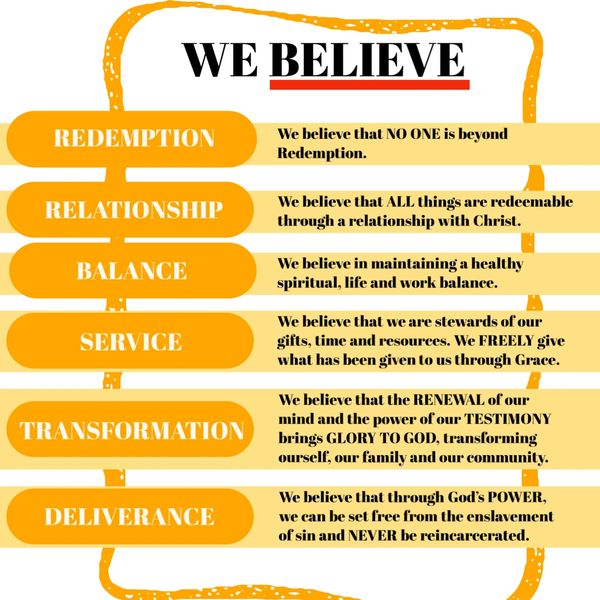 Serve the Kingdom of God by giving judicially involved people hope through Christian based counseling, workforce development and access to resources needed to become self-sufficient, law-abiding citizens.